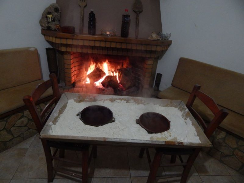 Βάνομε τη σκάφη, κοντά στην αναμένη με ξύλα παρασθιά, για να ζεσταίνεται.