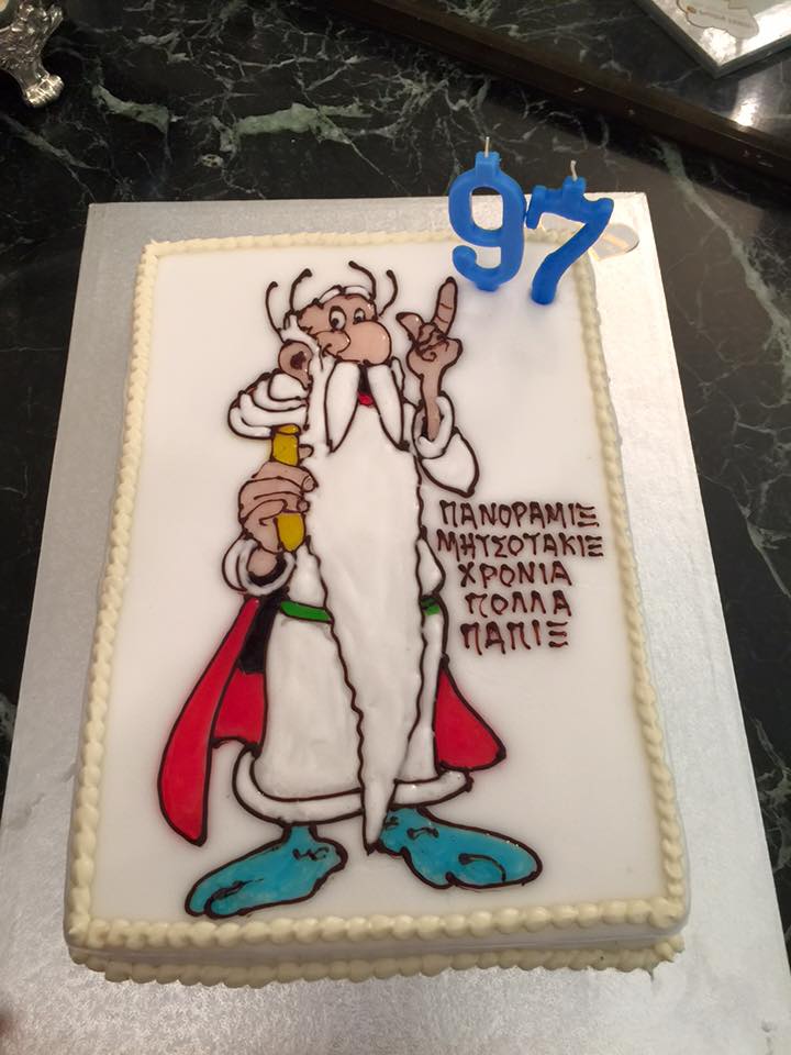 Τις φωτογραφίες τις ανέβασε στον προσωπικό της λογαριασμό στο facebook η Ντόρα Μπακογιάννη με το σβήσιμο των κεριών πάνω στην τούρτα που είχε τον Πανοραμίξ, του σοφού δρυίδη που έχει τη μυστική συνταγή για την μακροζωία.