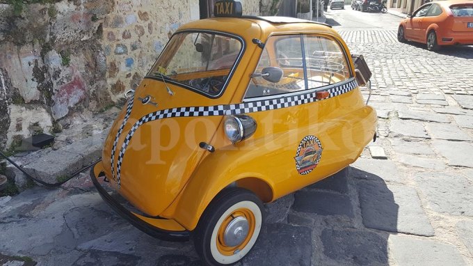 Πρόκειται ίσως για το πιο μικρό ταξί στον κόσμο… μία μίνι BMW που μας έρχεται από τις δεκαετίες του ’50 και του ’60 και κυριολεκτικά κέντρισε τα βλέμματα των περαστικών μπροστά από το νεώριο του Μόρο.