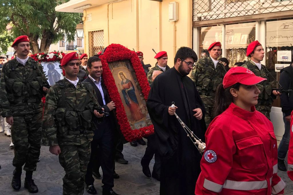 Τέλος, κατά το έθιμο, προσφέρθηκαν από μέρους του Εκκλησιαστικού Συμβουλίου του Ιερού Μητροπολιτικού Ναού και του Προϊσταμένου του, Αιδεσιμολ. Πρωτ. Χαραλάμπους Καμηλάκη, λουκουμάδες σε όλους τους ευσεβείς Χριστιανούς που συμπανηγύρισαν κατά την εορτή της Πολιούχου.