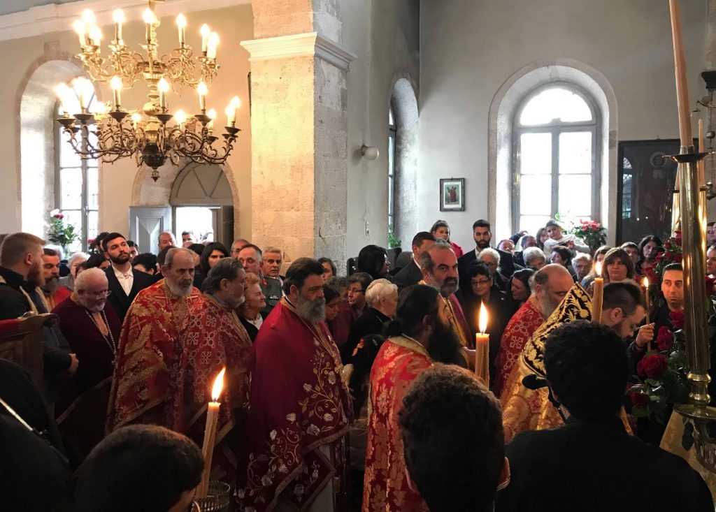 Το πρωΐ της Τετάρτης 4ης Δεκεμβρίου 2019 τελέσθηκε Αρχιερατικό Συλλείτουργο από τον Σεβ. Μητροπολίτη Ανέων κ. Μακάριο, τον Σεβ. Μητροπολίτη Αρκαλοχωρίου, Καστελλίου και Βιάννου κ. Ανδρέα και τον Επίσκοπό μας Σεβ. Μητροπολίτη Ρεθύμνης και Αυλοποτάμου κ. Ευγένιο. Συμμετείχαν πολλοί Κληρικοί από τη Μητρόπολή μας και από άλλες Εκκλησιαστικές Επαρχίες, μεταξύ των οποίων ο νέος Κωδικογράφος της Ιεράς Επαρχιακής Συνόδου της Εκκλησίας Κρήτης, Πανοσιολ. Αρχιμ. Ειρηναίος Μπατσάκης. Κατά τη Θεία Λειτουργία ο Σεβ. Μητροπολίτης Ρεθύμνης και Αυλοποτάμου κ. Ευγένιος τέλεσε την εις Διάκονον χειροτονία του π. Θεολόγου Παπαλεβυζάκη, αδελφού της Ιεράς Πατριαρχικής και Σταυροπηγιακής Μονής Αρκαδίου, του οποίου η μοναχική κουρά είχε πραγματοποιηθεί στην Ιερά Μονή το εσπέρας της Δευτέρας 2ας Δεκεμβρίου 2019.