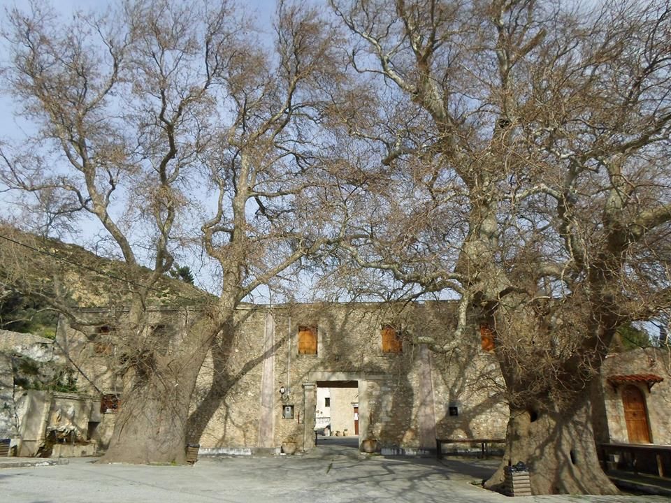 Εντυπωσιάζουν επίσης τα δυο τεράστια πλατάνια, που θεριεύουν αιώνες τώρα στην αυλή και χρονολογούνται στα 700 χρόνια.