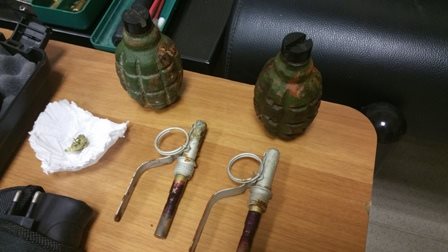 Βρέθηκαν και κατασχέθηκαν μεταξύ άλλων, οπλοπολυβόλο, 2 χειροβομβίδες, 3 πιστόλια, φυσίγγια και 4 αγγεία-αμφορείς