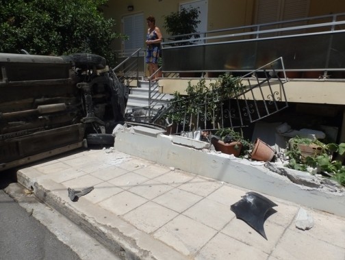 Συγκεκριμένα Ι.Χ. αυτοκίνητο που οδηγούσε ένας άνδρας ηλικίας 55 με 60 χρόνων περίπου και κατέβαινε την οδό Παπαναστασίου για άγνωστο λόγο ξέφυγε από την πορεία του, έπεσε σε τοιχίο σπιτιού που βρίσκεται επί του δρόμου και ανετράπη.