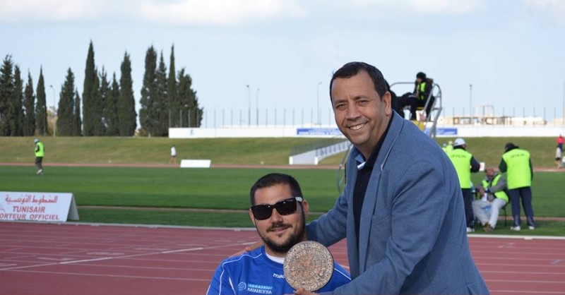 “Τρία χρόνια συμμετέχω στα Grand Prix της Τυνησίας. Από την πρώτη στιγμή που ήρθαμε σε αυτή τη χώρα δυνατές σχέσεις αναπτύχθηκαν ανάμεσα μας. Φέτος, λοιπόν, θέλοντας να επισφραγίσουμε τις σχέσεις αλληλοσεβασμού και φιλίας ανταλλάξαμε με τον πρόεδρο της τυνησιακής ομοσπονδίας ατόμων με αναπηρία ενθύμια φιλίας. Εγώ, λοιπόν, προσέφερα το σύμβολο της περιοχής μας, τον δίσκο της Φαιστού και ο πρόεδρος της ομοσπονδίας του ψηφιδωτό δίσκο με το σήμα της ομοσπονδίας τους. Ευχαριστώ πολύ! – Thanks Mr Med Mzoughi and NPC Tunisia for their present and their important friendship.”