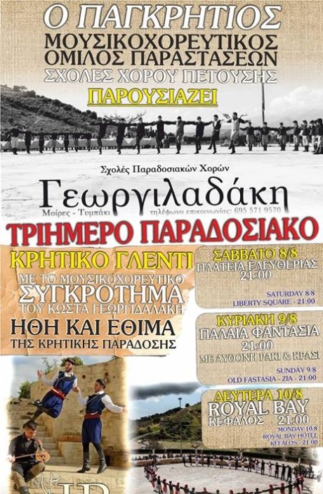 Τριήμερο φεστιβάλ χορού (3 κρητικά γλέντια) 8,9,10 Αυγούστου Διοργάνωση : Σχόλες χορού ΠΕΤΟΥΣΗΣ