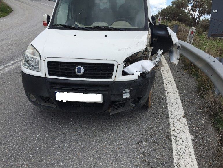 Πιο συγκεκριμένα στο πέμπτο χιλιόμετρο Αγία Γαλήνης – Τυμπάκι αυτοκίνητο ενοικιαζόμενο με επιβάτες δυο τουρίςτες με κατέυθυνση προς Τυμπάκι συγκρούστηκε με επαγγελματικό βάν με αποτέλεσμα να προκληθούν μεγάλες υλικές ζημιές