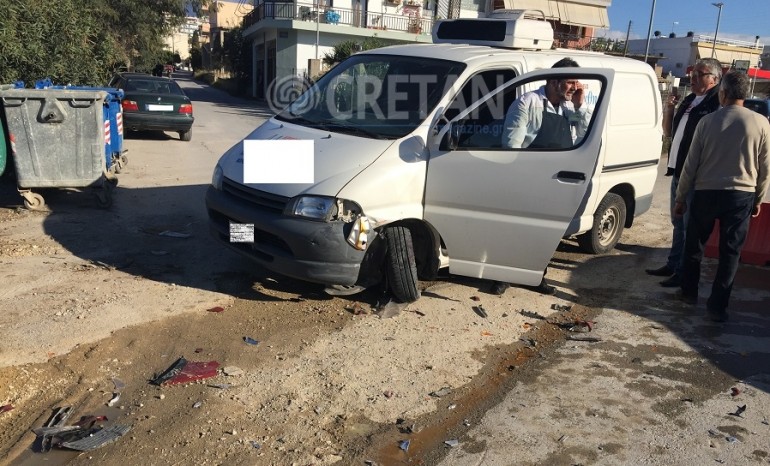 Στην είσοδο των Μοιρών, λίγο πριν την εκκλησία του Αγίου Νεκταρίου, ένα επιβατικό αυτοκίνητο συγκρούστηκε με επαγγελματική κλούβα, χωρίς ευτυχώς να τραυματιστεί κανείς αλλά με σοβαρές υλικές ζημιές.