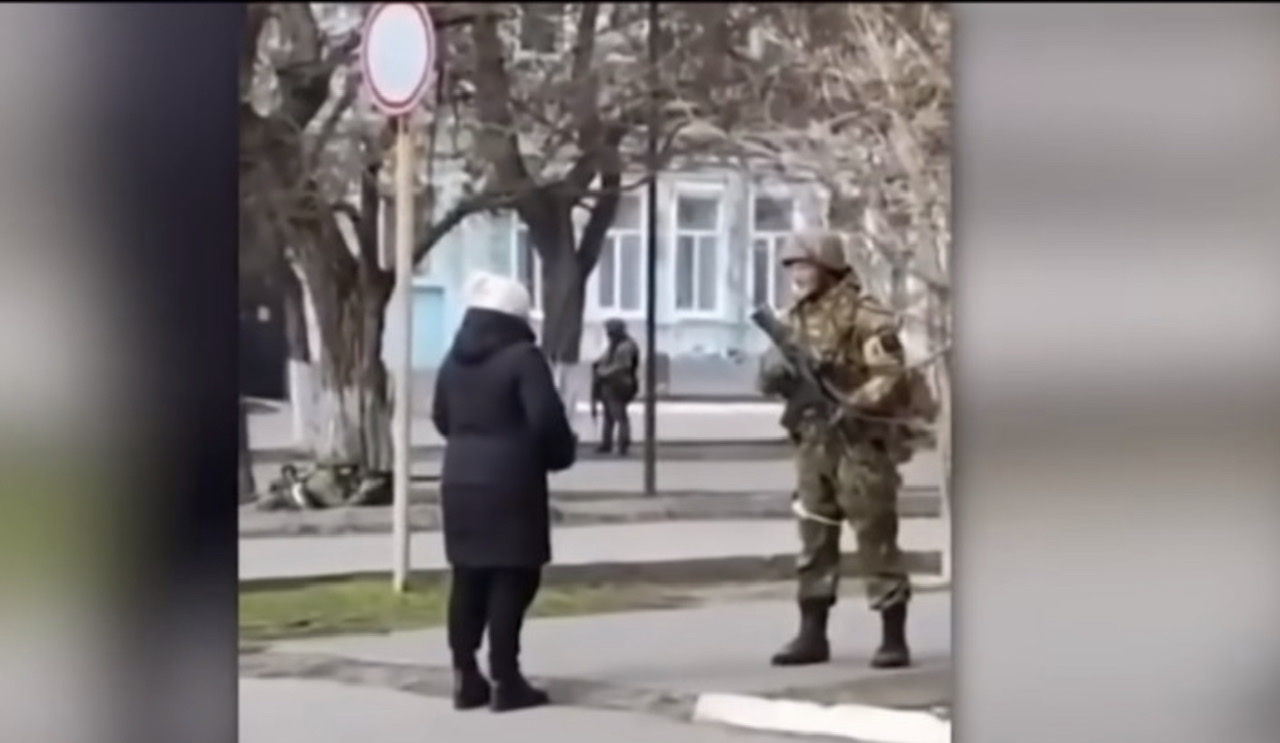 Το γύρο του κόσμου κάνει το βίντεο με τη στιγμή που μία γυναίκα στην Ουκρανία επιτίθεται φραστικά σε έναν οπλισμένο Ρώσο στρατιώτη