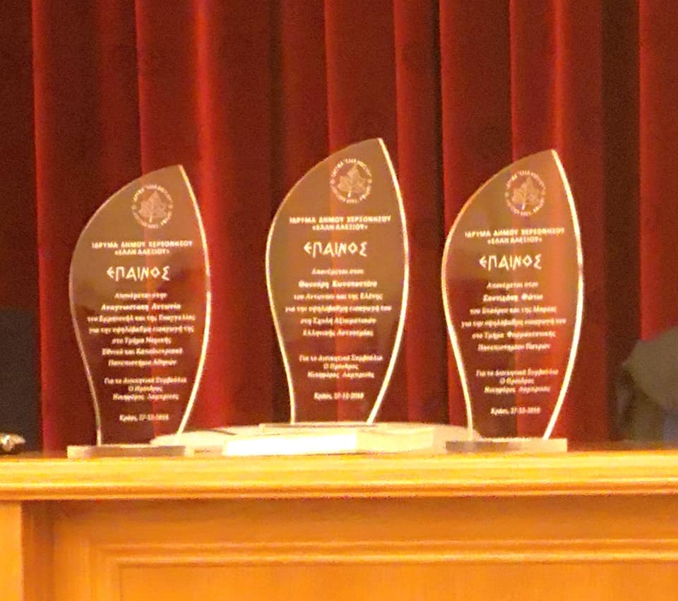Παρουσία του Δημάρχου Χερσονήσου κ. Γιάννη Μαστοράκη, του προέδρου του Δημοτικού Συμβουλίου κ. Κωνσταντίνου Τσαντηράκη, των κ.κ. Αντιδημάρχων Ευθύμιου Μουντράκη, Εμμανουήλ Κουλούρα και Νικολάου Αργυράκη , του προέδρου της Δευτεροβάθμιας Σχολικής Επιτροπής του Δήμου Χερσονήσου κ. Ιωάννη Ρουσάκη και του προέδρου του ιδρύματος κ. Νικηφόρου Λαμπρινού, απενεμήθηκαν έπαινοι και αριστεία στους τρείς πρώτους, που συνοδεύονται από υποτροφίες των χιλίων ευρώ για τον καθένα στο πλαίσιο της ενίσχυσης της ιδέας της αριστείας και της άμιλλας, αλλά και της προσπάθειας που καταβάλλει κάθε οικογένεια.