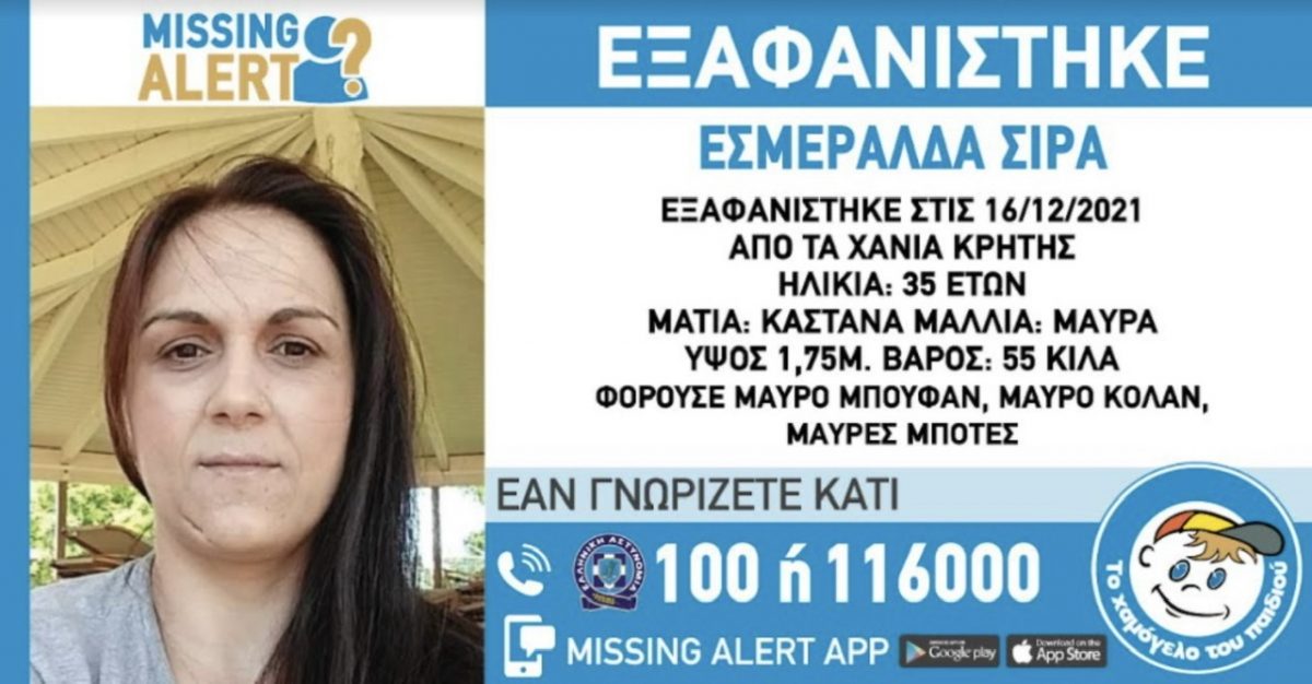 Αίσιο τέλος με την εξαφάνιση της 35χρονης Εσμεράλδα Σ. από τα Χανιά