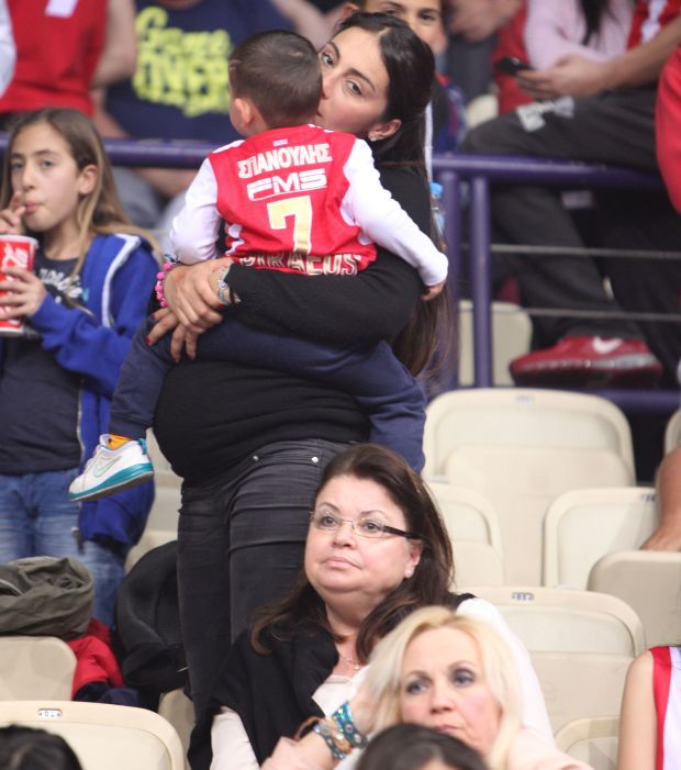 Η Ολυμπία αν και διανύει τον έκτο μήνα της εγκυμοσύνης της βρέθηκε στις κερκίδες του ΣΕΦ με τα τρία της παιδιά: τον 5χρονο Βασίλη, τον 2,5 χρόνων Θανάση και τον 1,5 έτους Δημήτρη, προκειμένου να καμαρώσει και να ενθαρρύνει το σύζυγό της στον αγώνα του Ολυμπιακού με την Μπαρτσελόνα.