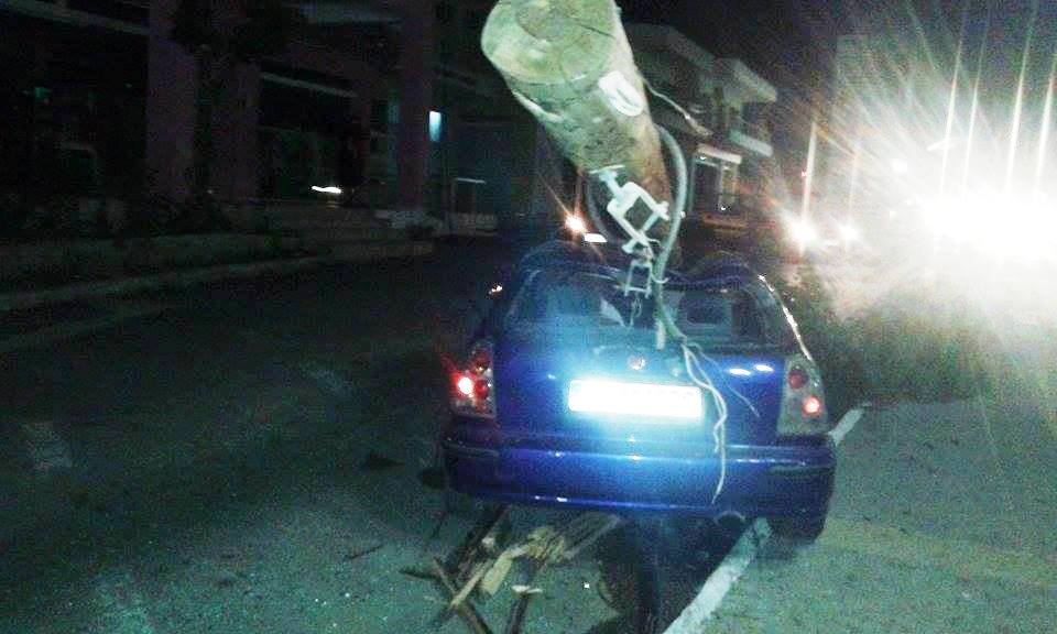 Σε στύλο της ΔΕΗ καρφώθηκε τα ξημερώματα Ι.Χ. αυτοκίνητο στην Παλιά Εθνική Χανίων Κισσάμου στην περιοχή του Μακρύ Τοίχου.