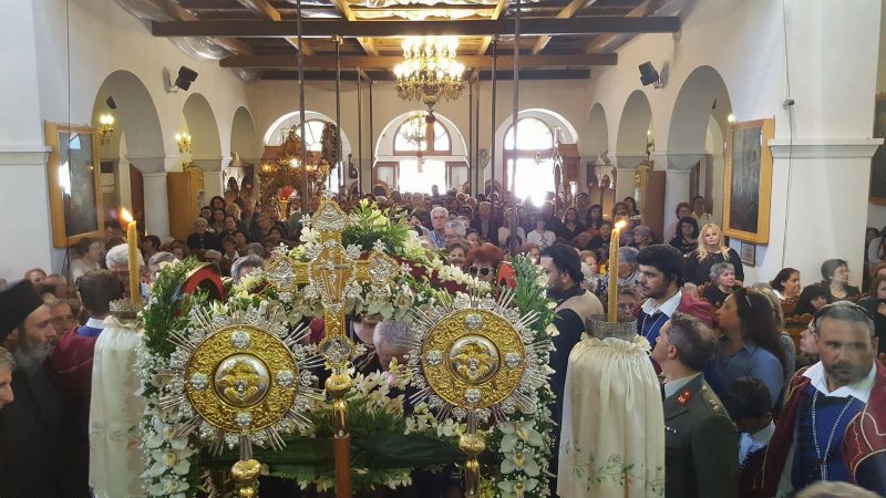 Πλήθος πιστών συγκεντρώθηκε από νωρίς στην περιοχή του Μασταμπά για την υποδοχή του άφθαρτου χεριού της Αγίας Μυροφόρου Μαρίας της Μαγδαληνής που έφτασε από τα Χανιά.