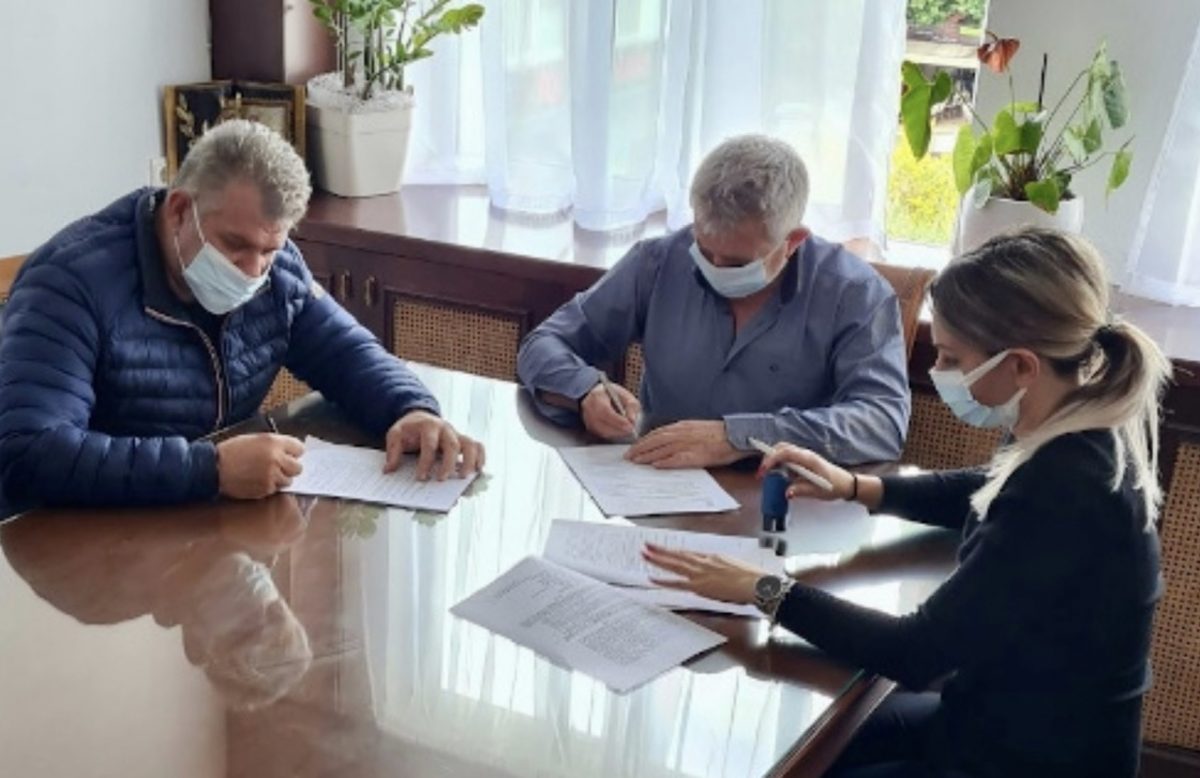 Τη σύμβαση για την κατασκευή κτιρίου αποδυτηρίων στο γήπεδο της Πόμπιας υπέγραψε ο Δήμαρχος Φαιστού κ. Γρηγόρης Νικολιδάκης με την εκπρόσωπο της αναδόχου εταιρίας, παρουσία του αρμόδιου Αντιδημάρχου Τεχνικών Έργων και Πολεοδομίας κ. Γιάννη Φασομυτάκη.